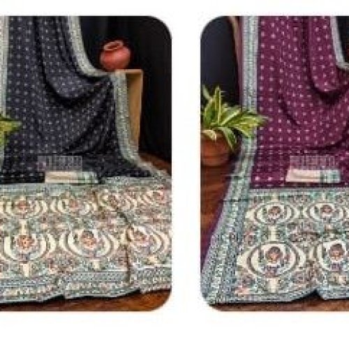 Red Madhubani Printed Crepe Silk Saree